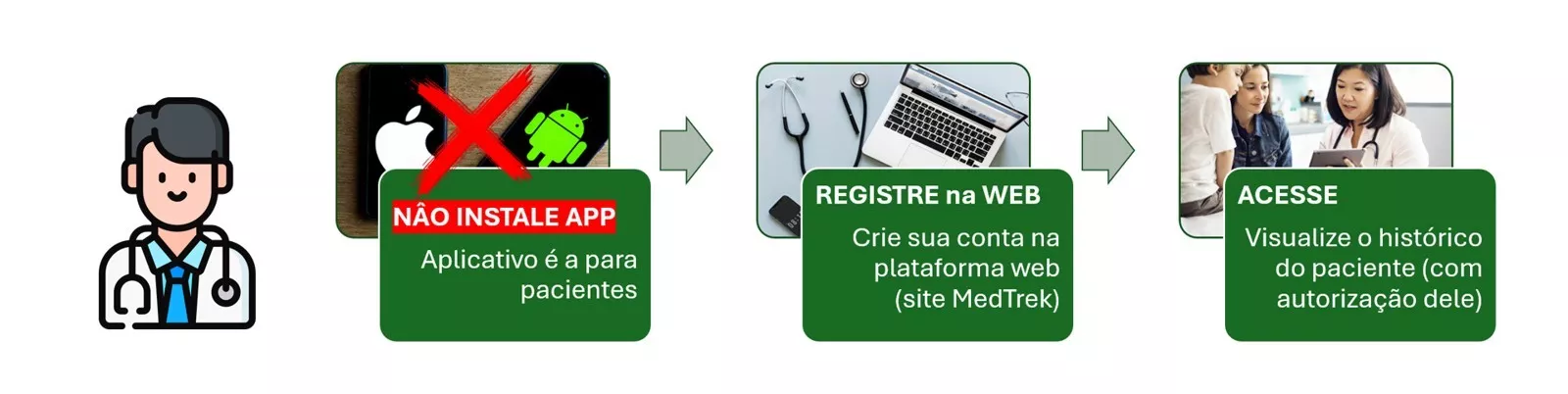 Em uma época em que a tecnologia toma o lugar das pessoas, o MedTrek surge como a tecnologia a serviço da humanização da saúde.