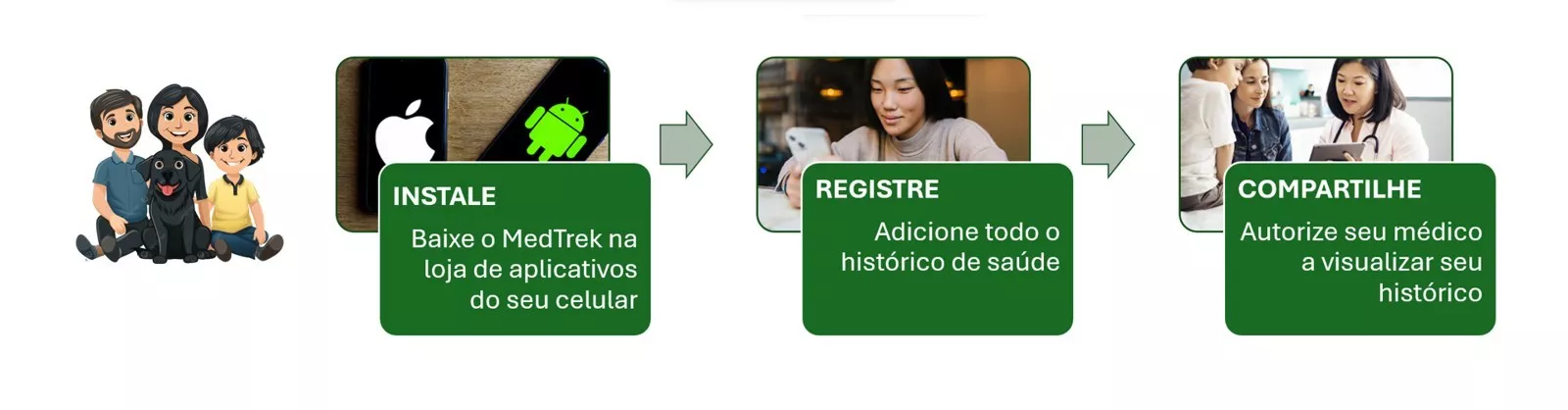 MedTrek NÃO é um convênio médico! MedTrek é um aplicativo que centraliza o prontuário médico das pessoas no telefone, oferecendo uma opção inovadora para revolucionar e melhorar a gestão de saúde do paciente.
